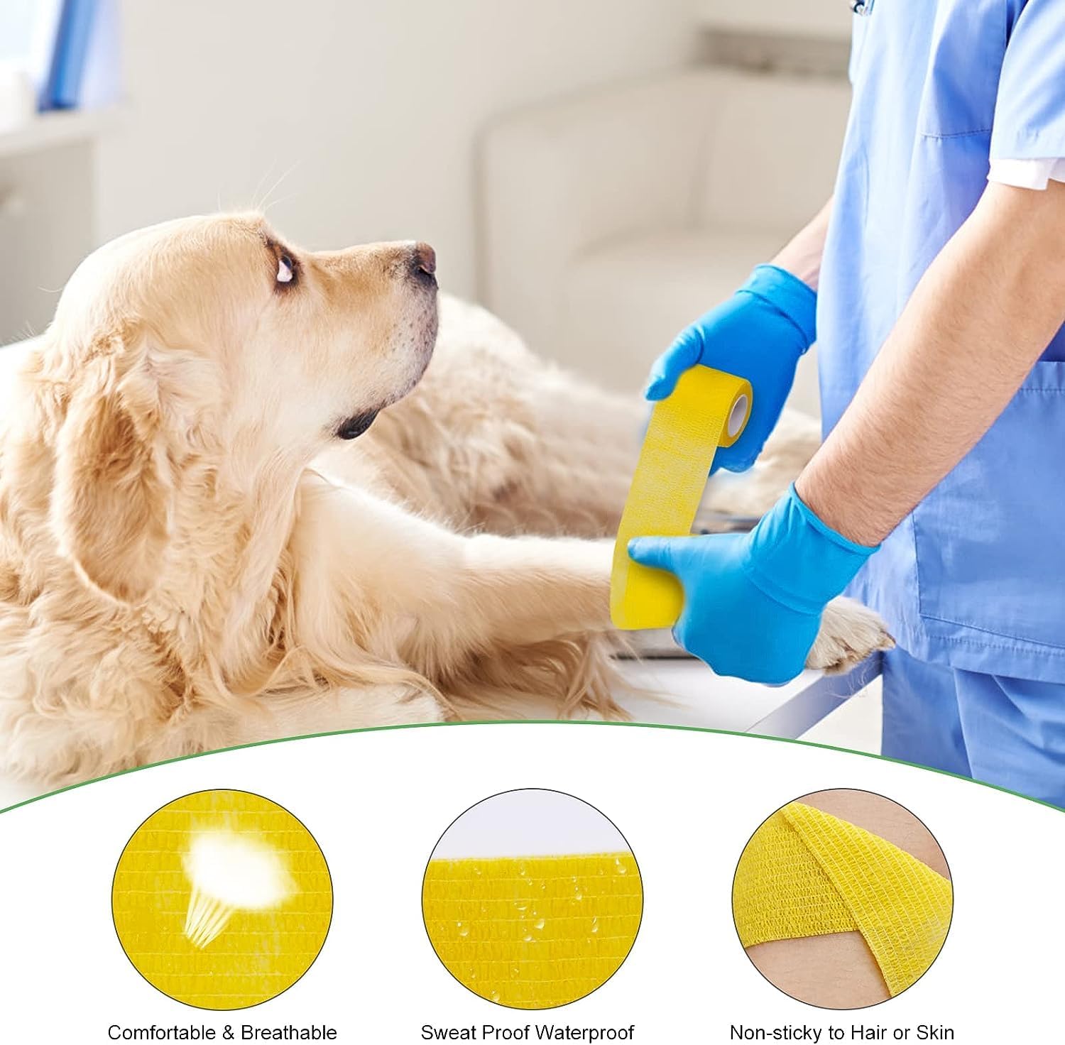 4. Vodeodolný: Ideálny pre domáce zvieratá s aktívnym životným štýlom, tento obväz je odolný voči vode a vlhkosti, čo zaisťuje, že váš maznáčik môže pokračovať vo svojich každodenných činnostiach bez toho, aby ohrozil proces hojenia.